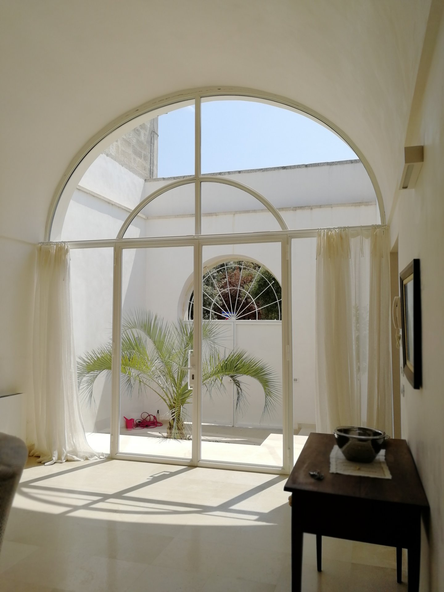 Infissi centinati in ferro completi di serratura, verniciatura a forno e vetri camera antisfondamento centinati