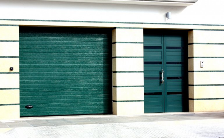Sezionale motorizzato in alluminio coibentato colore verde muschio modello a doghe orizzontali